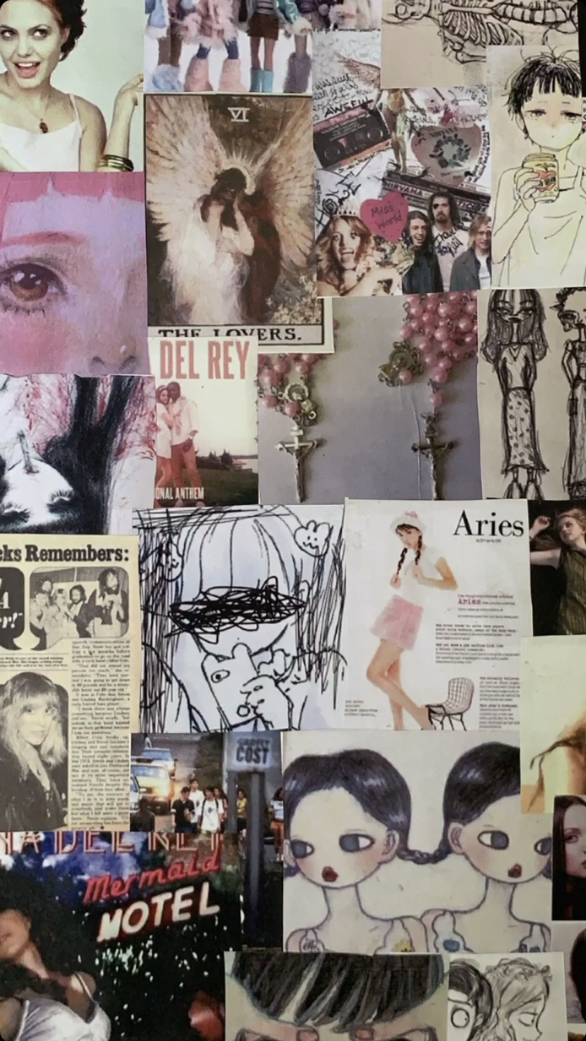 SCRAPBOOK COLLAGE, USING OLD MAGAZINE CUTOUTS AND PRINTED OUT PINTEREST PINS